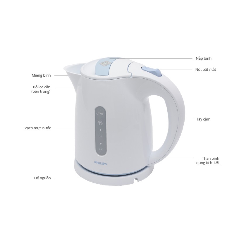 Thông số kỹ thuật Bình đun siêu tốc Philips 1.5 lít HD4646