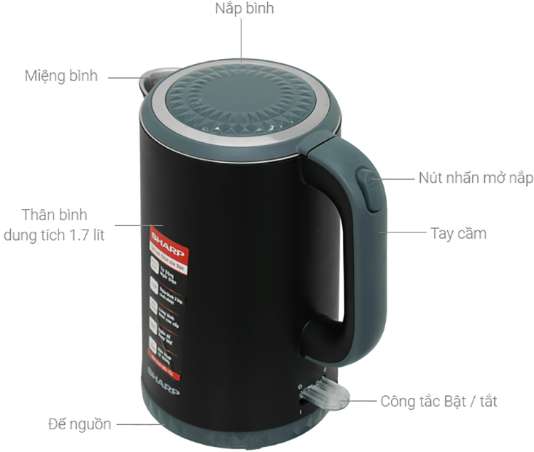 Giới thiệu Bình đun siêu tốc SHARP EKJ-17EVPS-BK-Hàng Chính Hãng