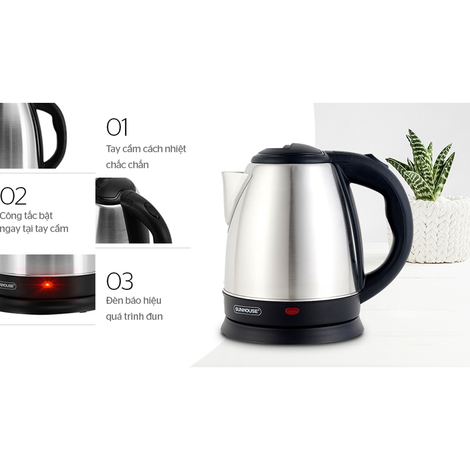 Bình đun siêu tốc Sunhouse 1.5 lít SHD1057 Ấm điện siêu tốc cao cấp bảo hành 12 tháng.
