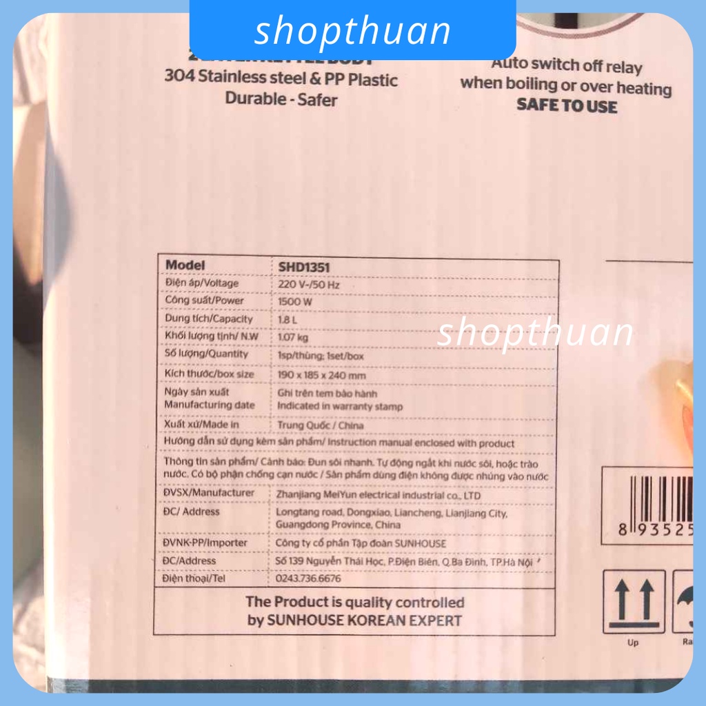 Bình đun siêu tốc Sunhouse 1.8 lít SHD1351 1500W - inox 2 lớp, ấm siêu tốcTHÔNG TIN SẢN PHẨM