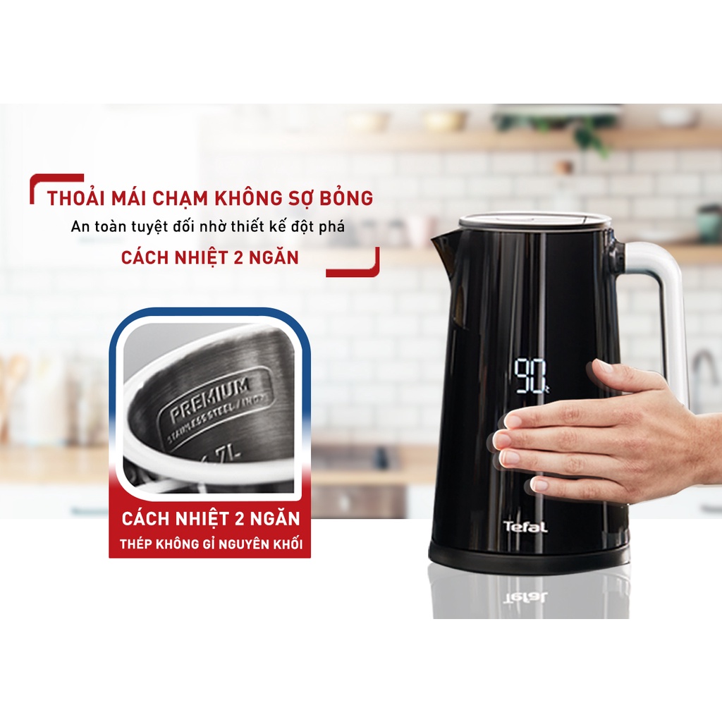 Bình đun siêu tốc Tefal Smart & Light KO850810 1.7L - Tuỳ chỉnh nhiệt độ, giữ ấm 30 phút, màn hình LED hiển thị nhiệt độ