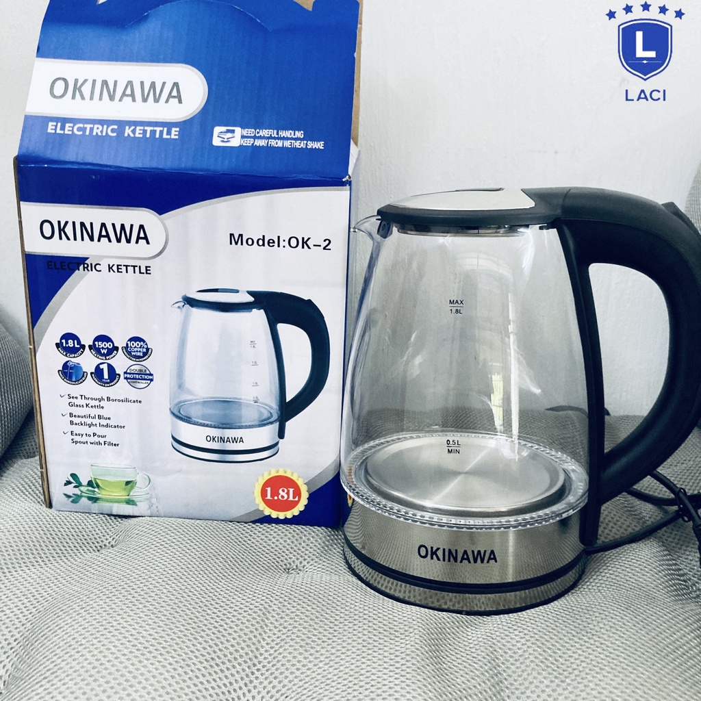Bình đun siêu tốc thủy tinh OKINAWA OK-2 Công Suất 1500W Có Đèn UV Khử Khuẩn Mâm Nhiệt Bằng Gang