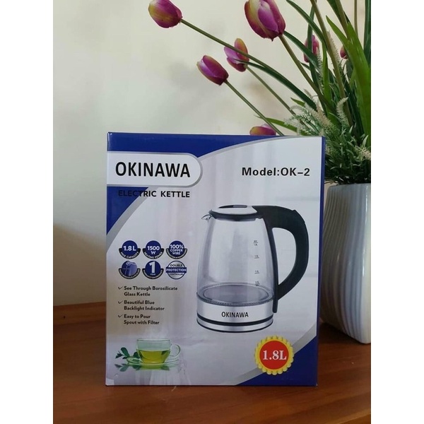 Bình đun siêu tốc thủy tinh OKINAWA OK-2 Công Suất 1500W Có Đèn UV Khử Khuẩn-----------------------------------------------------------------------------------------------