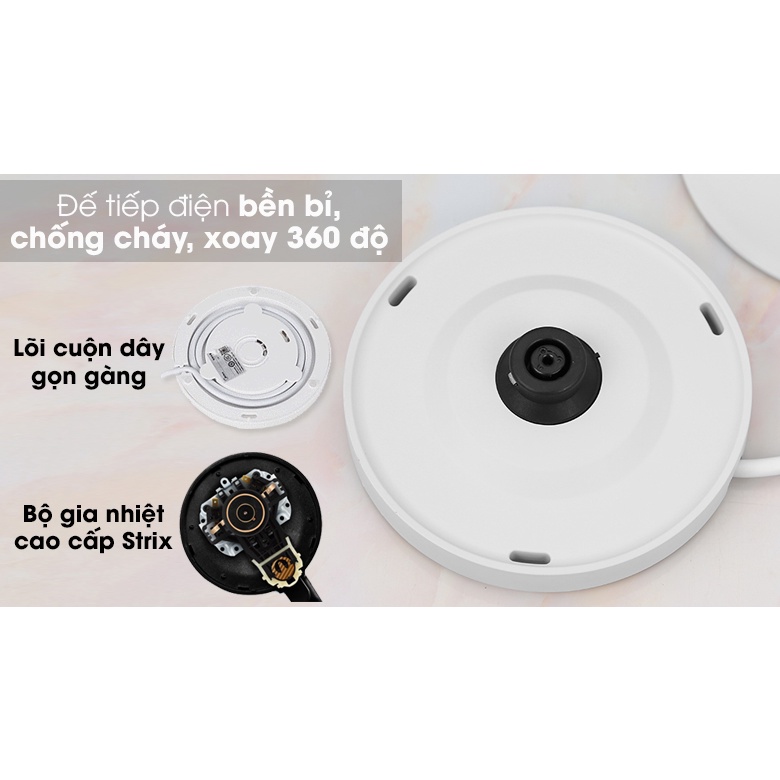 Kết hợp với bộ gia nhiệt cao cấp Strix của Anh Quốc với độ bền sử dụng đến 10.000 lần, kiểm soát nhiệt, bảo vệ người dùng, tránh cháy nổ tối đa. Đặc biệt, sản phẩm còn có tính năng tự ngắt khi nước sôi hay khi cạn nước giúp kéo dài độ bền cho bình đun siêu tốc hiệu quả.