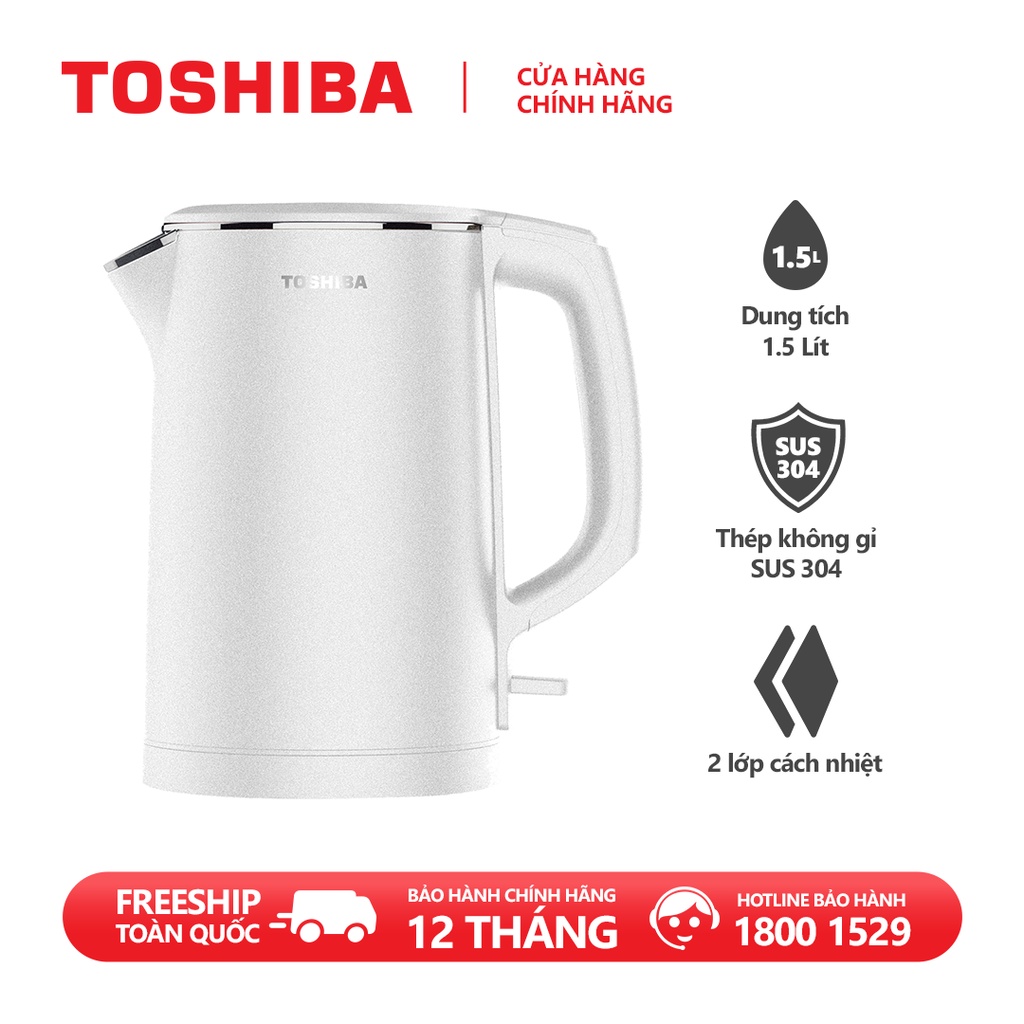 Bình đun siêu tốc Toshiba KT-15DS1PV - 1.5L - Inox 304 - Hàng chính hãng, bảo hành 12 tháng, chất lượng Nhật Bản