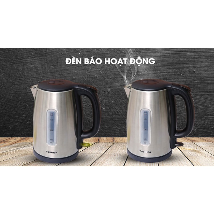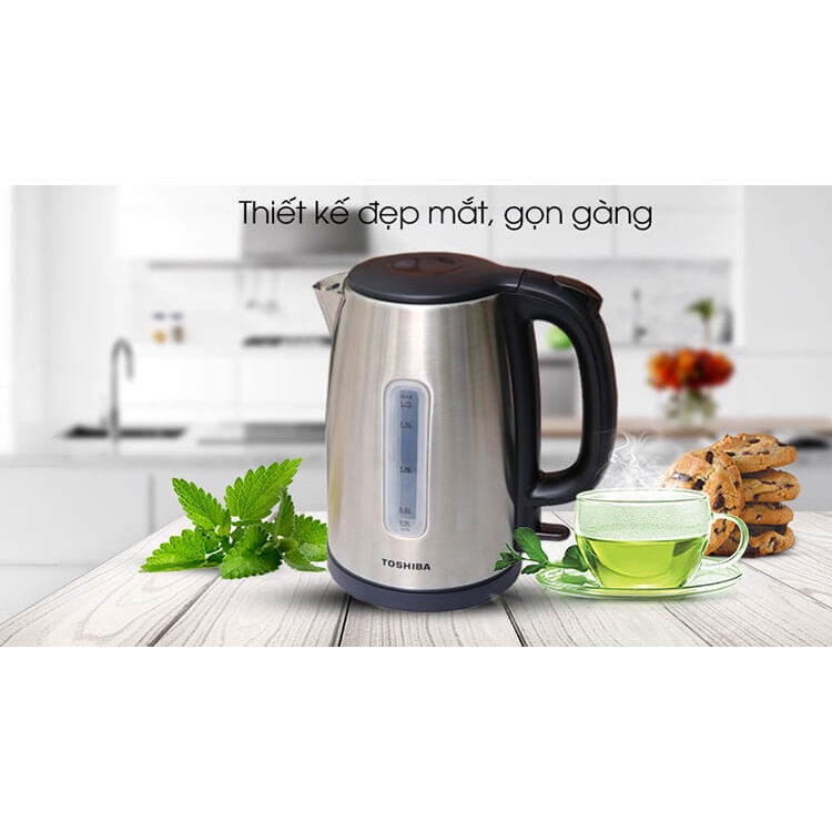 Bình đun siêu tốc TOSHIBA KT-17SH1NV được làm bằng thép không gỉ, có độ bền cao, chống bám cặn. Bình có kiểu dáng đơn giản, nhỏ gọn, không chiếm nhiều diện tích, góp phần tô điểm thêm cho không gian căn bếp nhà bạn.