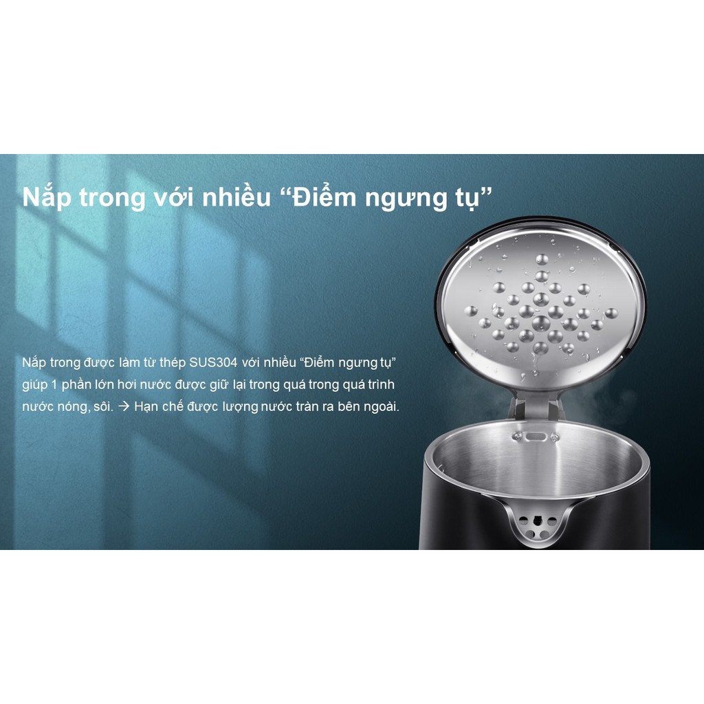 Lớp trong của nắp làm bằng inox 304 tăng khả năng truyền nhiệt cho nước mau sôi hơn. Bên cạnh đó, thân bình trang bị 2 lớp cách nhiệt chống nóng, đảm bảo bạn không bị bỏng tay khi cầm nắm, di chuyển và thao tác với bình.