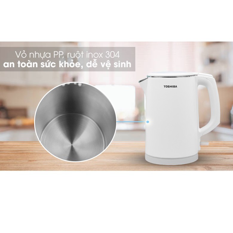 Bình đun siêu tốc Toshiba thiết kế đơn giản, màu trắng tươi sáng cho không gian bếp thêm hiện đại, tinh tế
