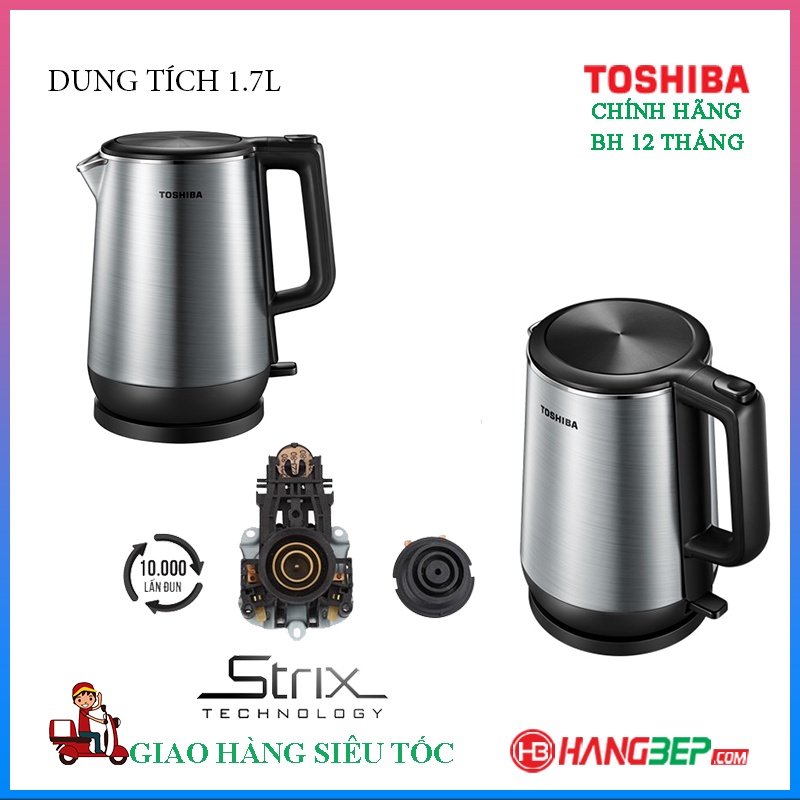 ✅ Bình đun siêu tốc Toshiba màu inox 304 sáng bóng, kiểu dáng sang trọng, dung tích lớn 1.7 lít sử dụng thuận tiện tại gia đình, văn phòng nhỏ...