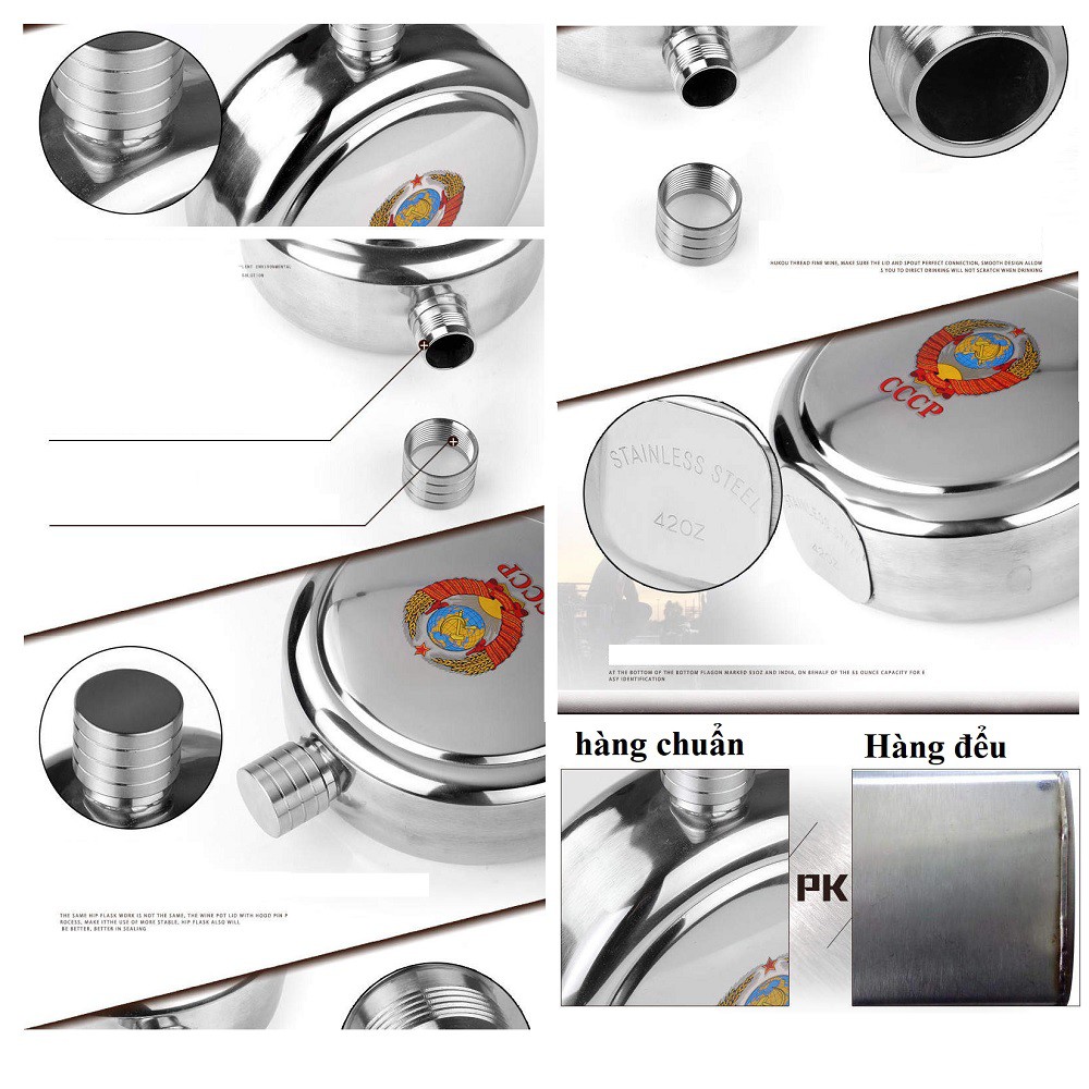 Giới thiệu Bình đựng cccp inox 354 dung tích 1.2 lít 42oz Tặng túi da đeo, tặng chén shopaha247 inox 354 dày 0.8 mm shopaha247