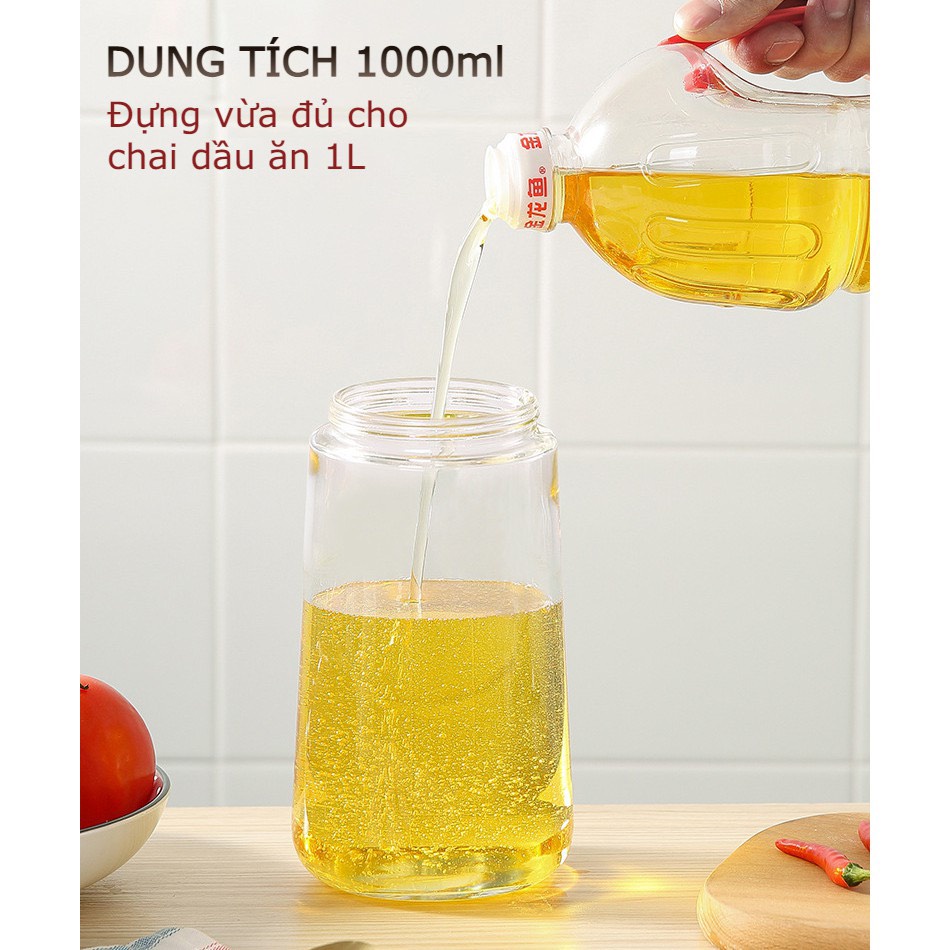 Giới thiệu Bình Đựng Dầu Ăn Bằng Thủy Tinh Dung Tích 1000ML Dày Dặn, Nắp Đóng Mở Tự Động Kèm Vòi Rót Dầu Inox 304 Hàng Chất Lượng