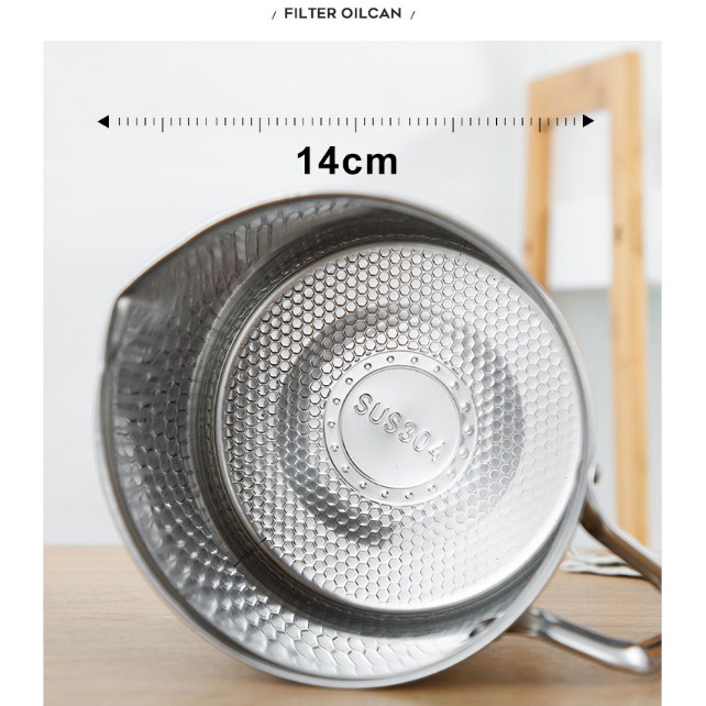 Bình Đựng Dầu Ăn Có Lưới Lọc Dung Tích 1.2L Bằng Thép Không Gỉ Đồ lọc cặn dầu chống dính chuyên dụng dành cho nhà bếpThông số kỹ thuật: