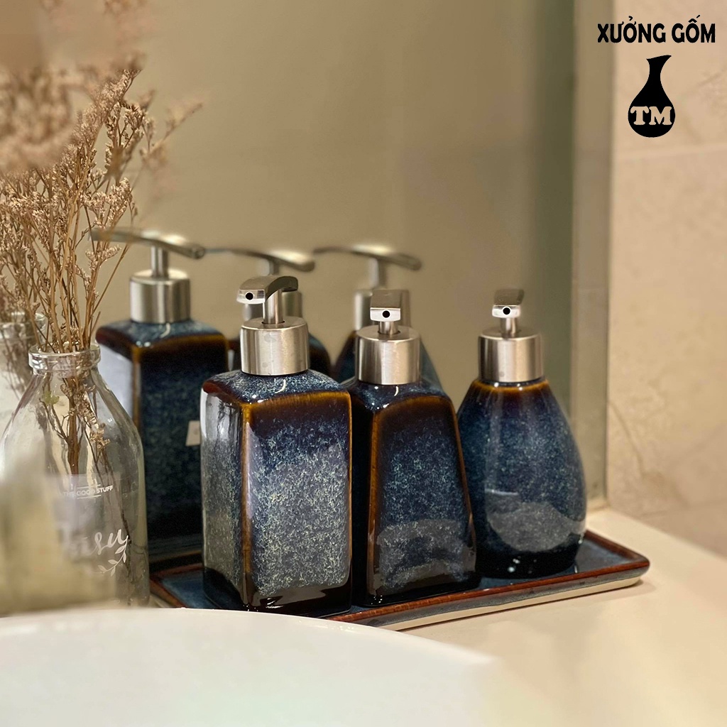Bình Đựng Dầu gội, Sữa tắm, Dầu xả, Nước rửa tay Xưởng Gốm TM Bát Tràng Men Hỏa Biến Cao Cấp