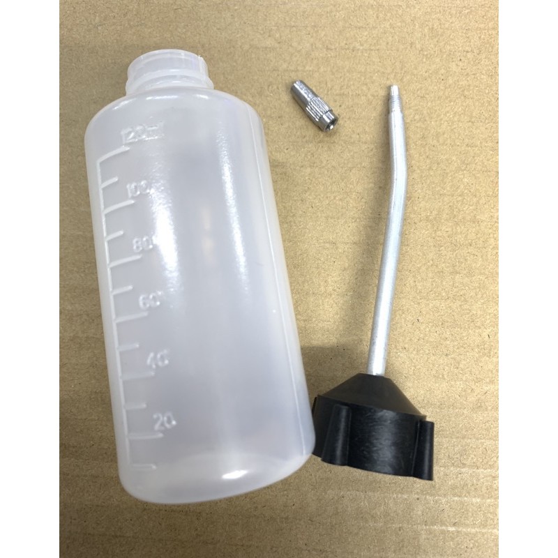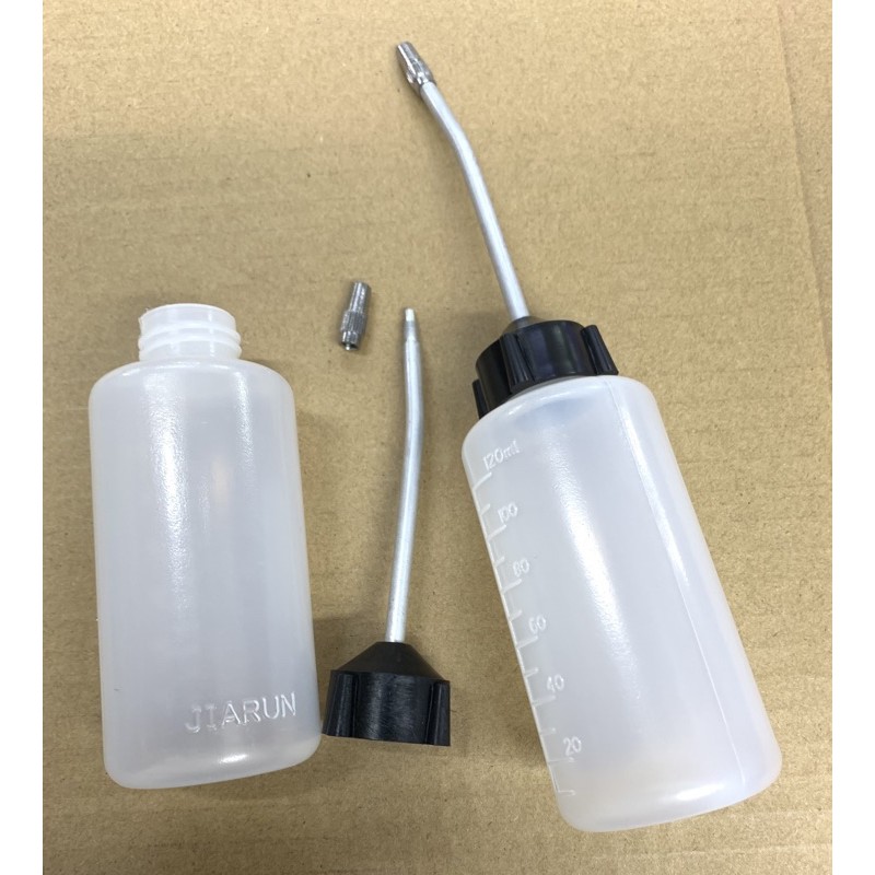 Bình nhựa xịn dùng chứa dầu máy may, dung tích 120mlVòi của bình là kim loại có đầu vặn vào nắp sẽ đảm bảo không rỉ chảy dầu ra ngoài làm dơ đồ