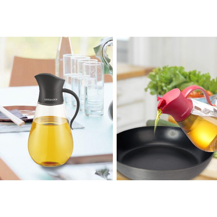 Bình Đựng Dầu Với Nắp Mở Tự Động Lock&Lock CKO101 (550ml) - Hàng Chính Hãng (Đen/Đỏ)