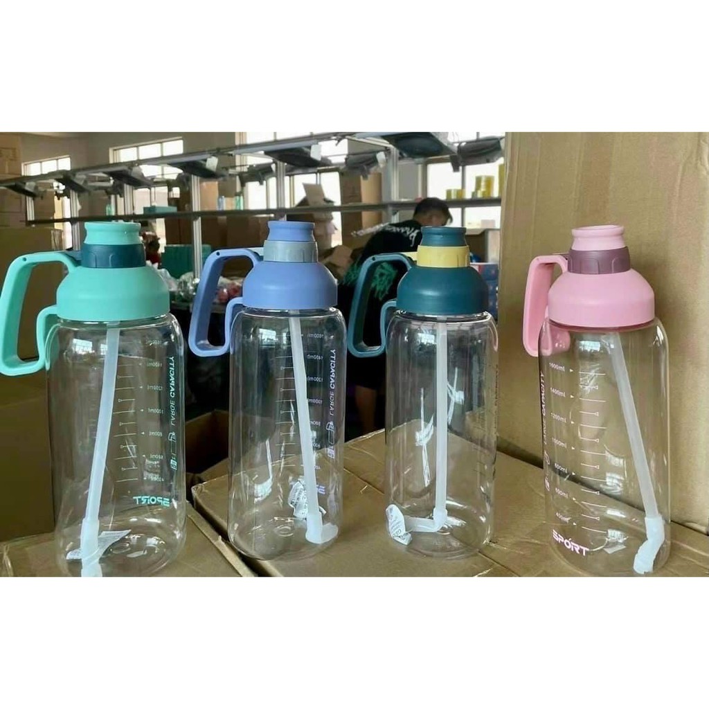 Bình nước, bình đựng nước tập gym 1800ML phong cách thể thao Quá đẹp,đựng nước thôi cũng phải phong cáchBình nhựa big size 1800ml có ống hút và vạch chia ml