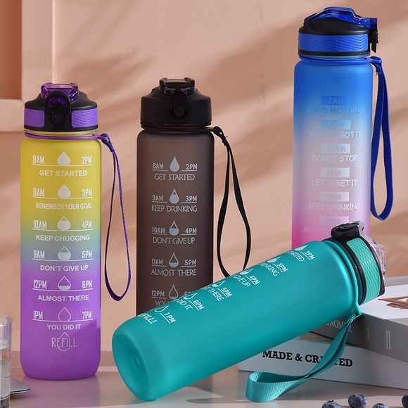 Nhà cửa & Đời sống > Bộ đồ bàn ăn > Bình nước & phụ kiện || Bình Đựng Nước 1L Nhiều Màu Có Vạch Báo Giờ Uống Nước (Kenzi-Shop)Còn hàng