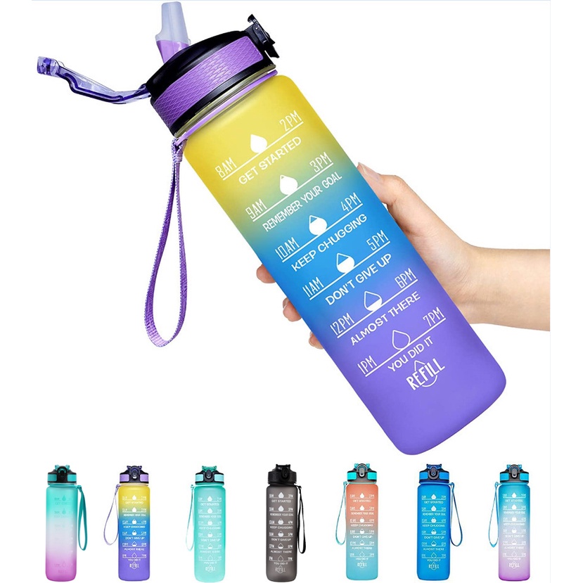 Bình Đựng Nước 1L Nhiều Màu Có Vạch Báo Giờ Uống Nước (Kenzi-Shop)