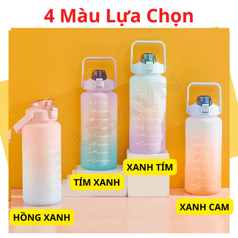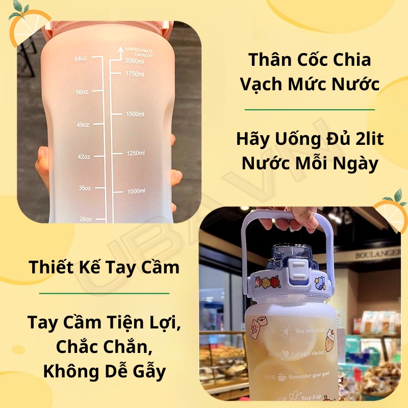 Bình Đựng Nước 2 Lít Có Chia Vạch Tặng Sticker Cute Dễ Thương Báo Giờ Dành Cho Người Lười Uống Nước UBAVN028.QUÀ TẶNG ĐI KÈM: