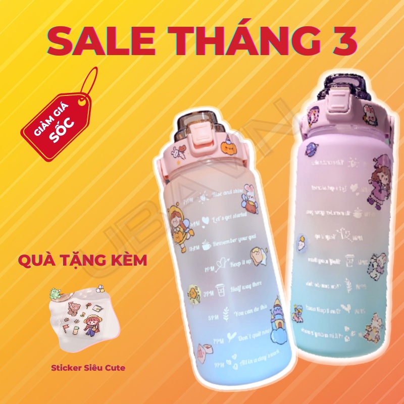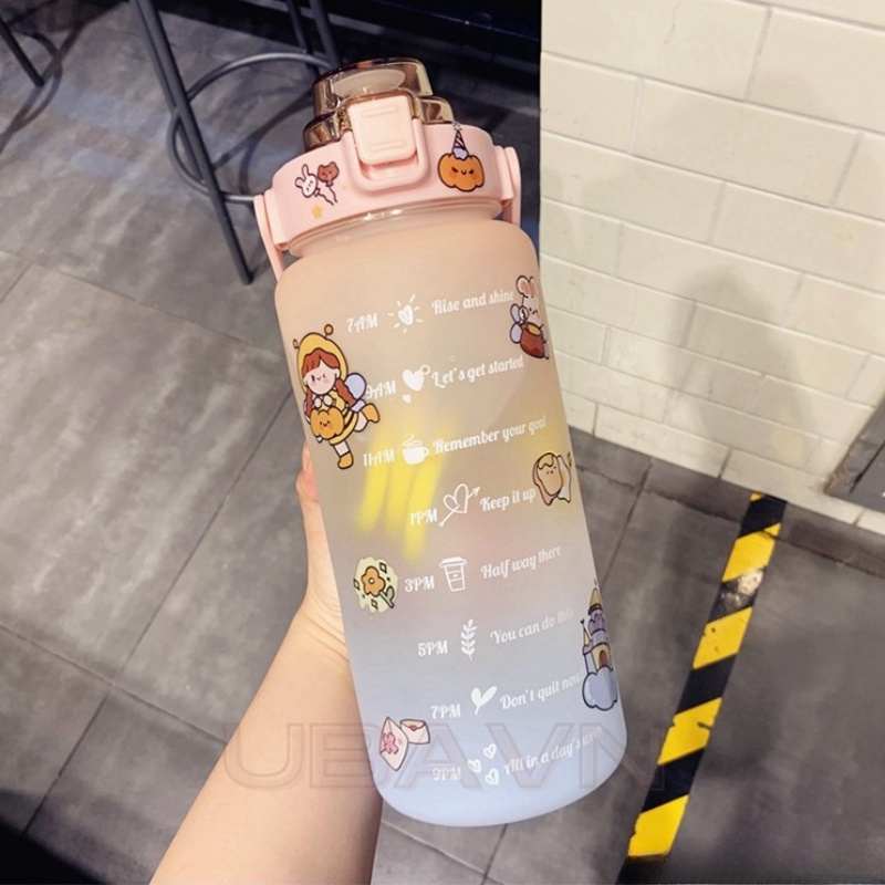 Bình Đựng Nước 2 Lít Có Chia Vạch Tặng Sticker Cute Dễ Thương Báo Giờ Dành Cho Người Lười Uống Nước UBAVN028