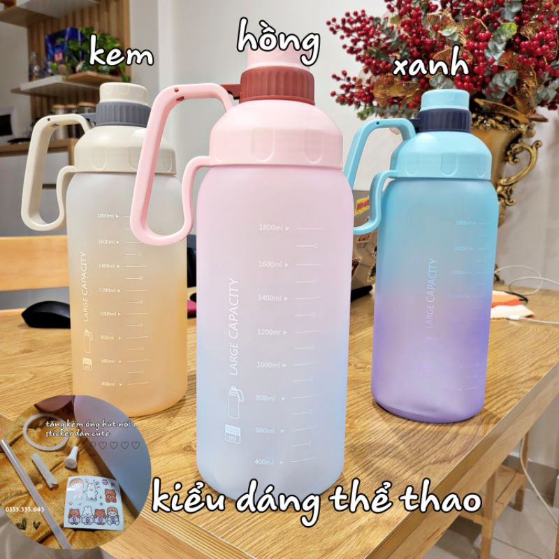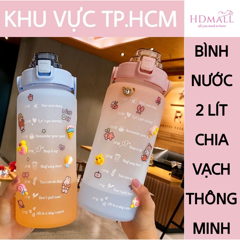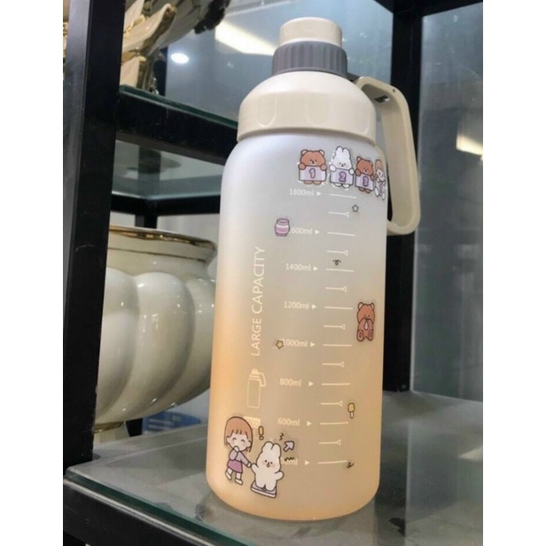Bình Đựng Nước 2 Lít Siêu To Khổng Lồ Dễ Thương Có Vạch Nhắc Nhở Uống Nước Mỗi Ngày> Dung tích bình đến 2L nước bà con ơi