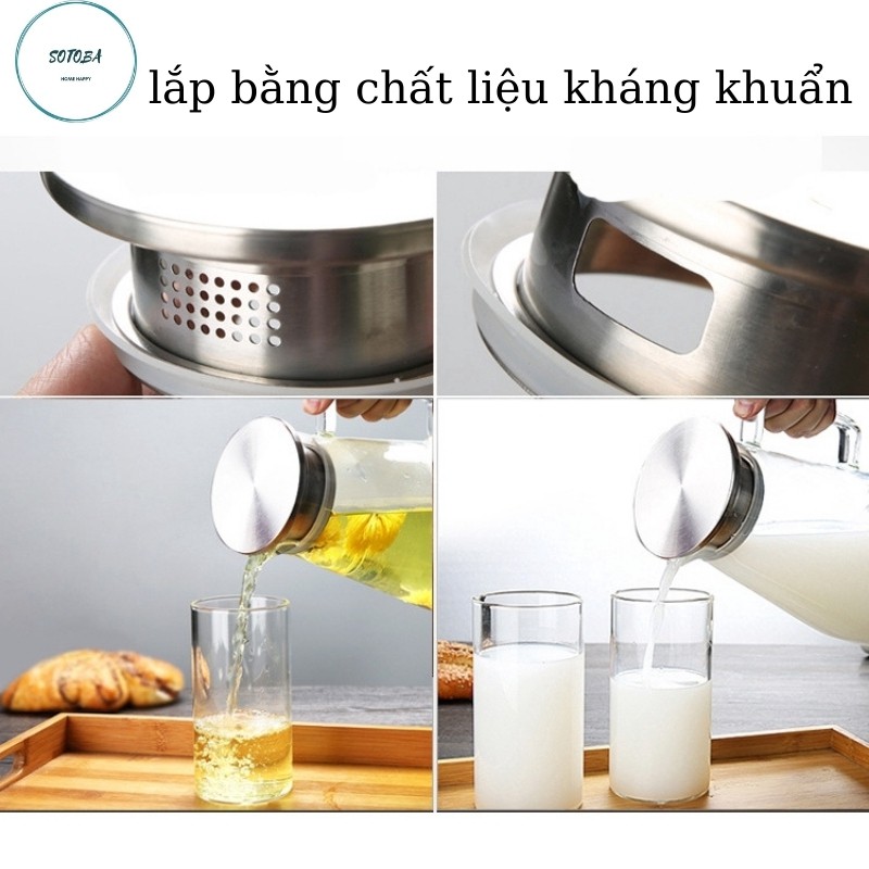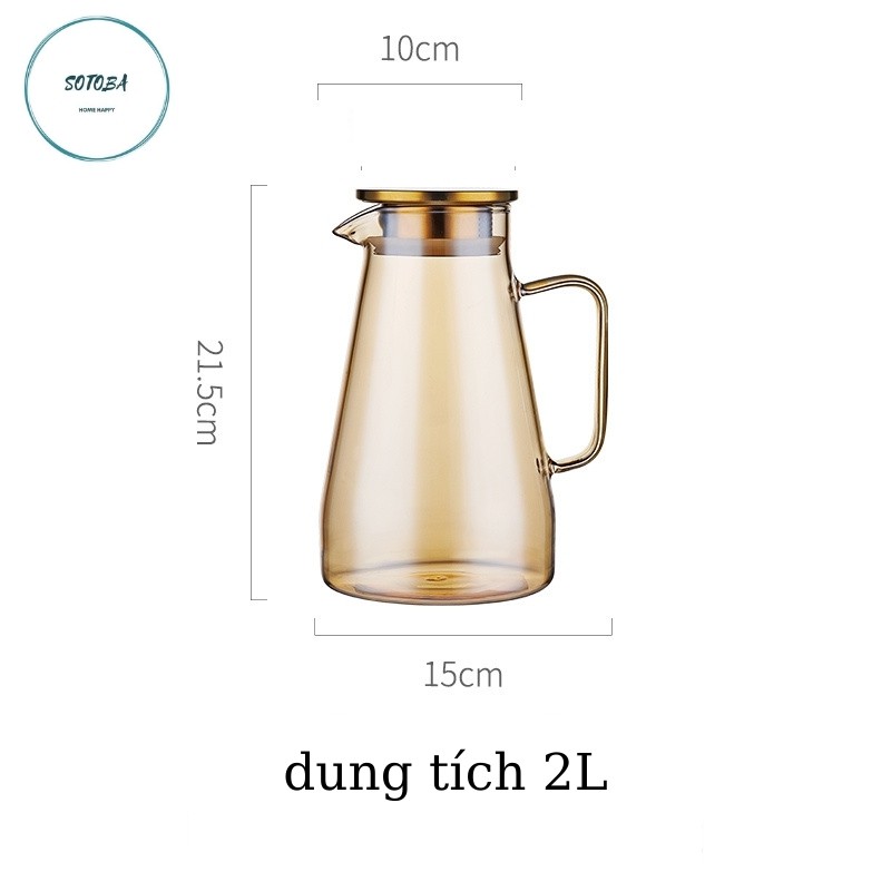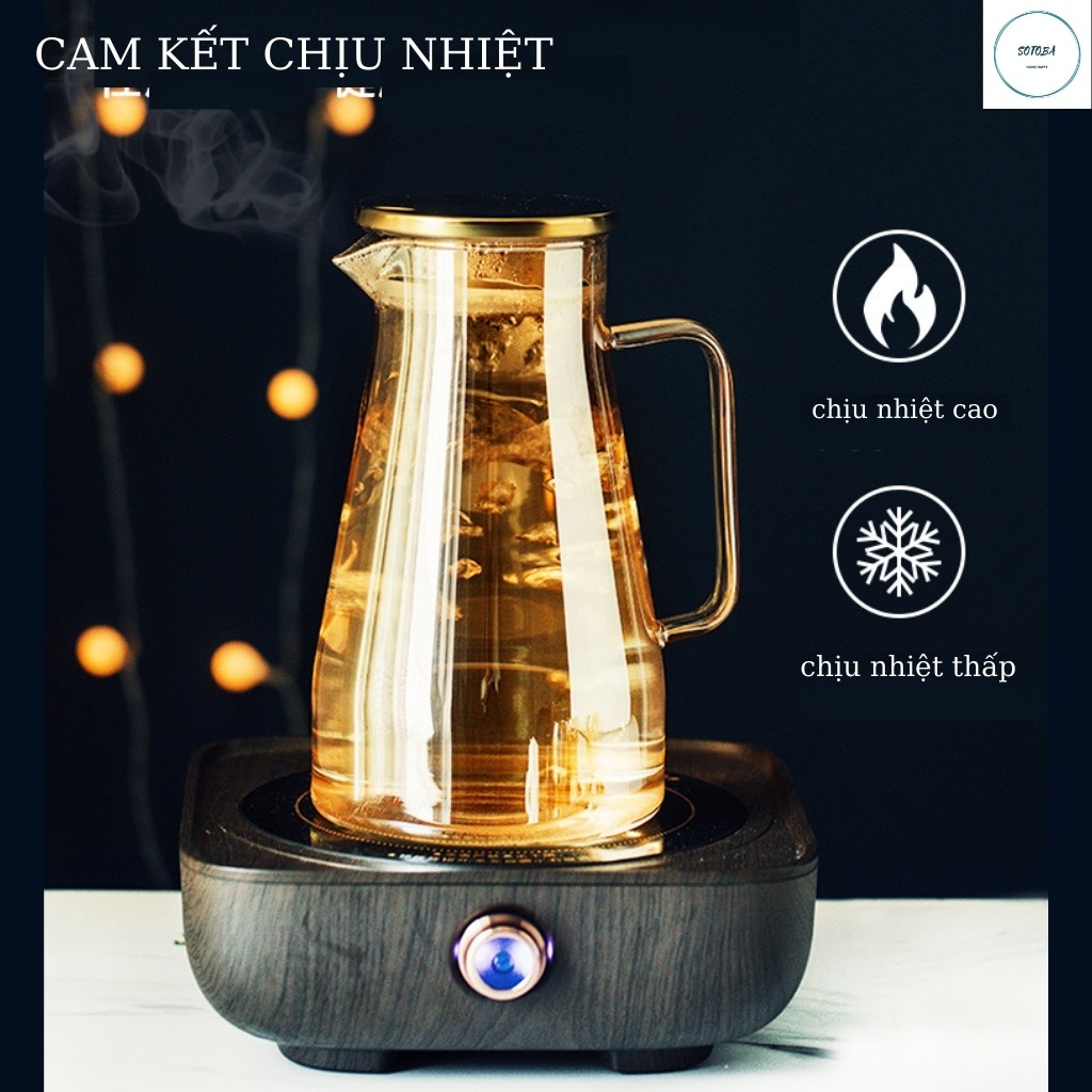 Bình đựng nước 2 lít thủy tinh chịu nhiệt cao trong suốt sáng bóng bộ bình thủy tinh cao cấp sang trọng ấm trà có vòi so