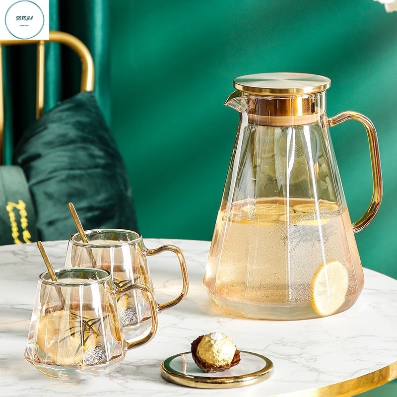 Nhà cửa & Đời sống > Bộ đồ bàn ăn > Bình nước & phụ kiện || Bình đựng nước 2 lít thủy tinh chịu nhiệt cao trong suốt sáng bóng bộ bình thủy tinh cao cấp sang trọng ấm trà có vòi soCòn hàng