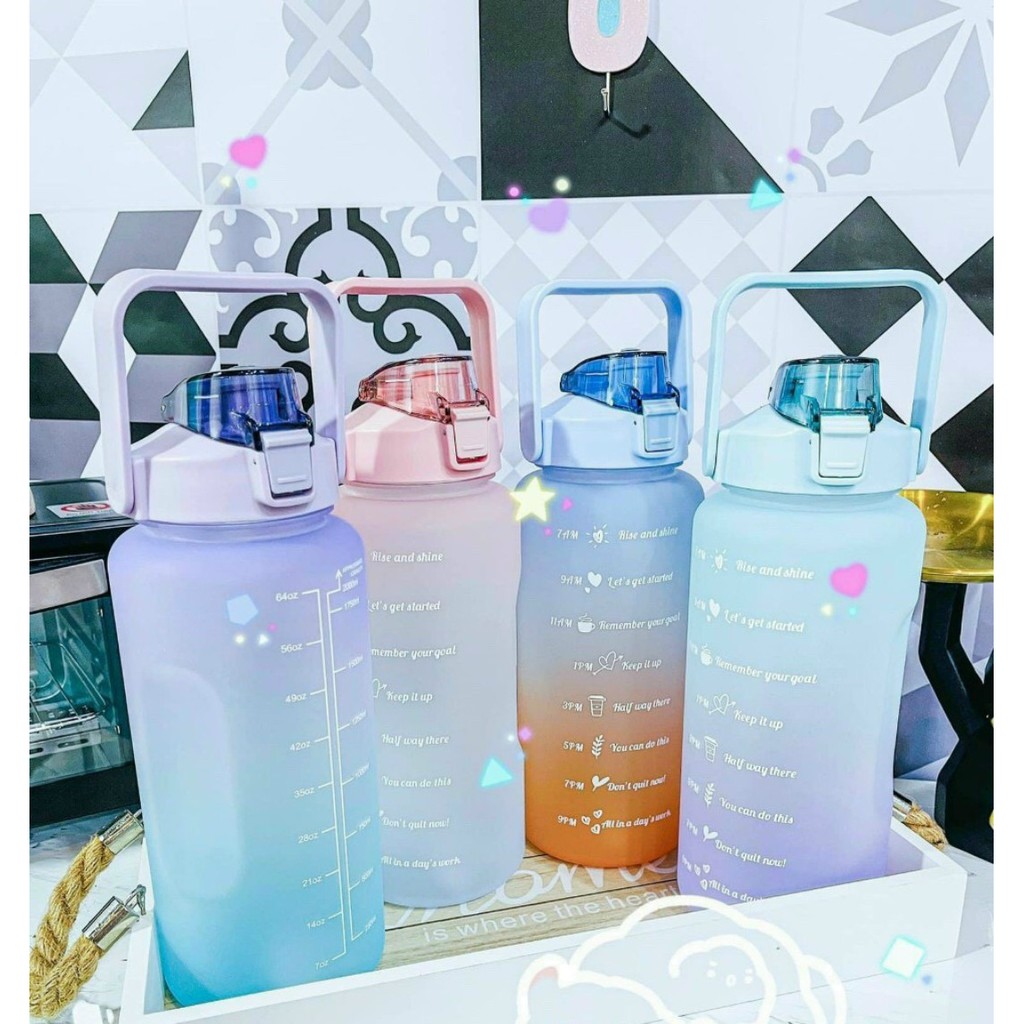 Nhà cửa & Đời sống > Bộ đồ bàn ăn > Bình nước & phụ kiện || Bình Đựng Nước 2L Dễ Thương Có Vạch Báo Giờ Uống Nước tặng STICKERCòn hàng