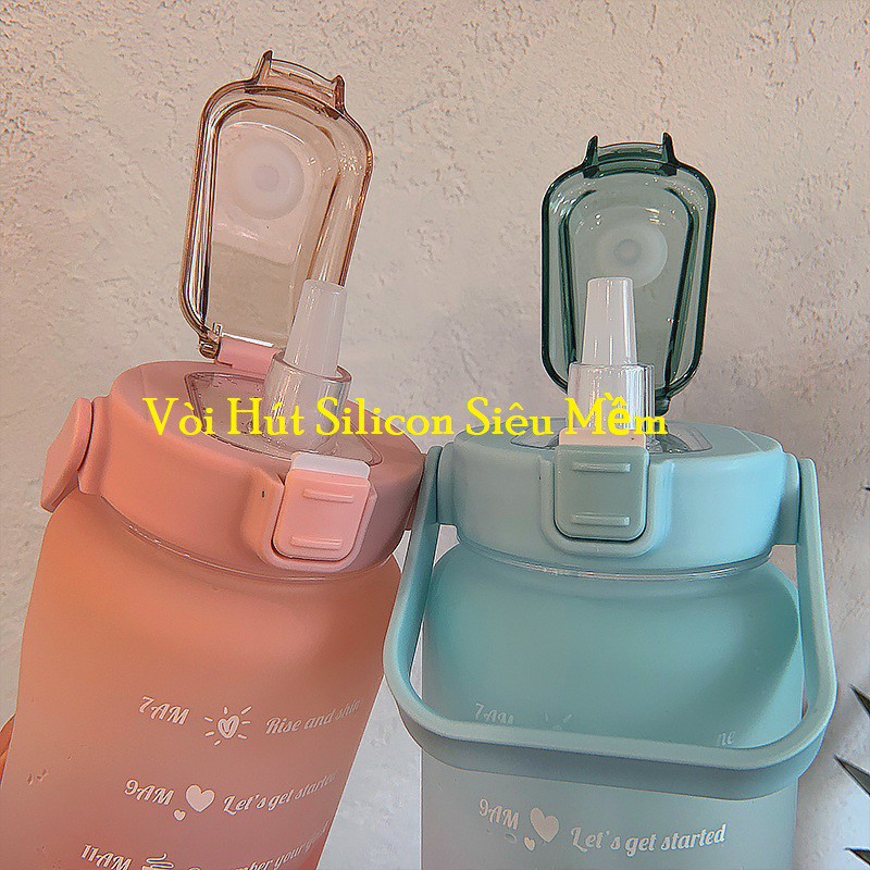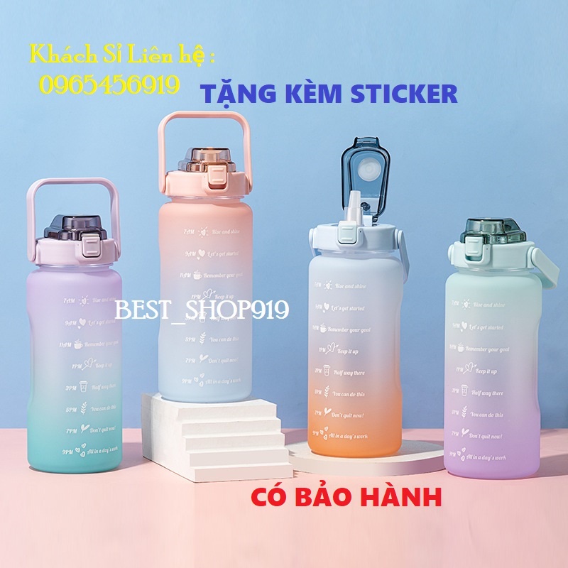 Giới thiệu Bình Đựng Nước 2L Dễ Thương Có Vạch Báo Giờ Uống Nước tặng STICKER