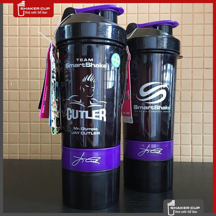 - Trên bình lắc có in hình chữ ký của nhà vô địch Olympia Ronnie Coleman, Jay Cutler, Phil Heath với thiết kế sang trọng, đẹp mắt được thiết kế từ nhựa cao cấp bền, chắc chắn.