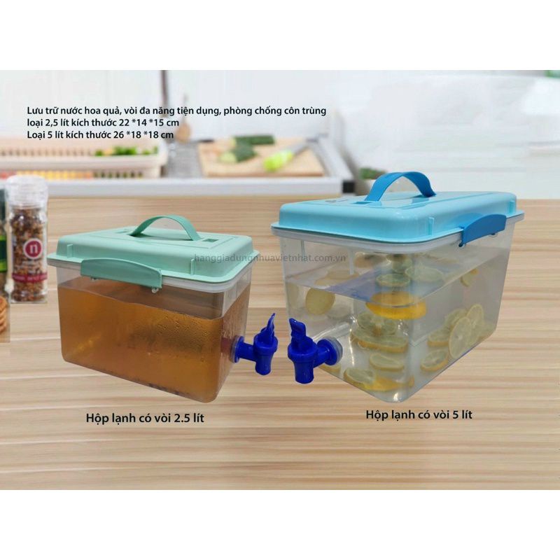 BÌNH NƯỚC CÓ VÒI ĐỂ TỦ LẠNH- Loại 2.5l : Dài 22, cao 15, rộng 14