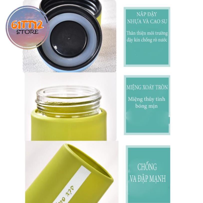 Bình có dung tích 450ml rất nhỏ gọn và tiện dụng phù hợp mang đi tập thể dục, đi học, đi làm, cho các chuyến dã ngoại, picnic, dễ dàng cho vào balo hoặc túi xách. Sản phẩm được thiết kế bằng 2 lớp, một lớp vỏ bên ngoài, bên trong là lớp thủy tinh an toàn cho sức khỏe.