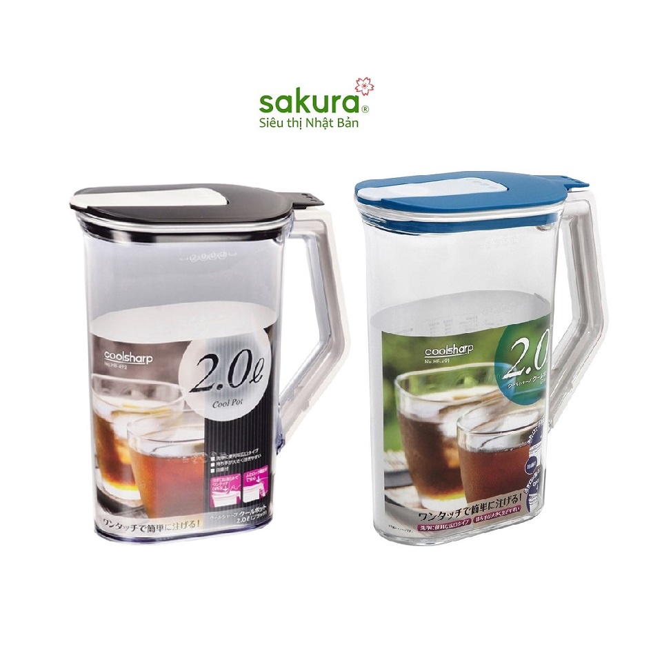 Bình đựng nước cao cấp 2 lít Made in Japan- Chất liệu: nhựa trong cao cấp