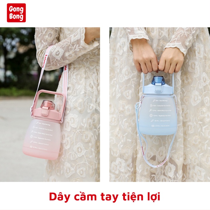 Bình đựng nước có ống hút bật tự động khi mở nắp bình nước chia vạch báo giờ uống nước loại lớn 2 lít và 1,4 lít