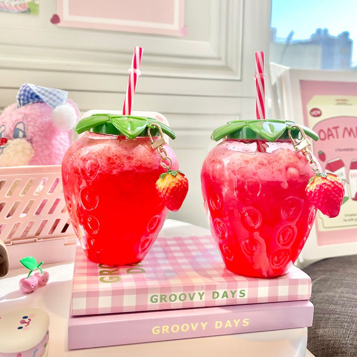 Nhà cửa & Đời sống > Bộ đồ bàn ăn > Bình nước & phụ kiện || Bình Đựng Nước Dâu Tây Xinh Xắn TẶNG KÈM MÓC CHÌA KHÓA VÀ ỐNG HÚTCòn hàng