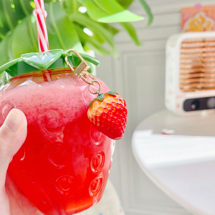 - - Bình đựng nước quả dâu tây kèm ống hút và móc khóa