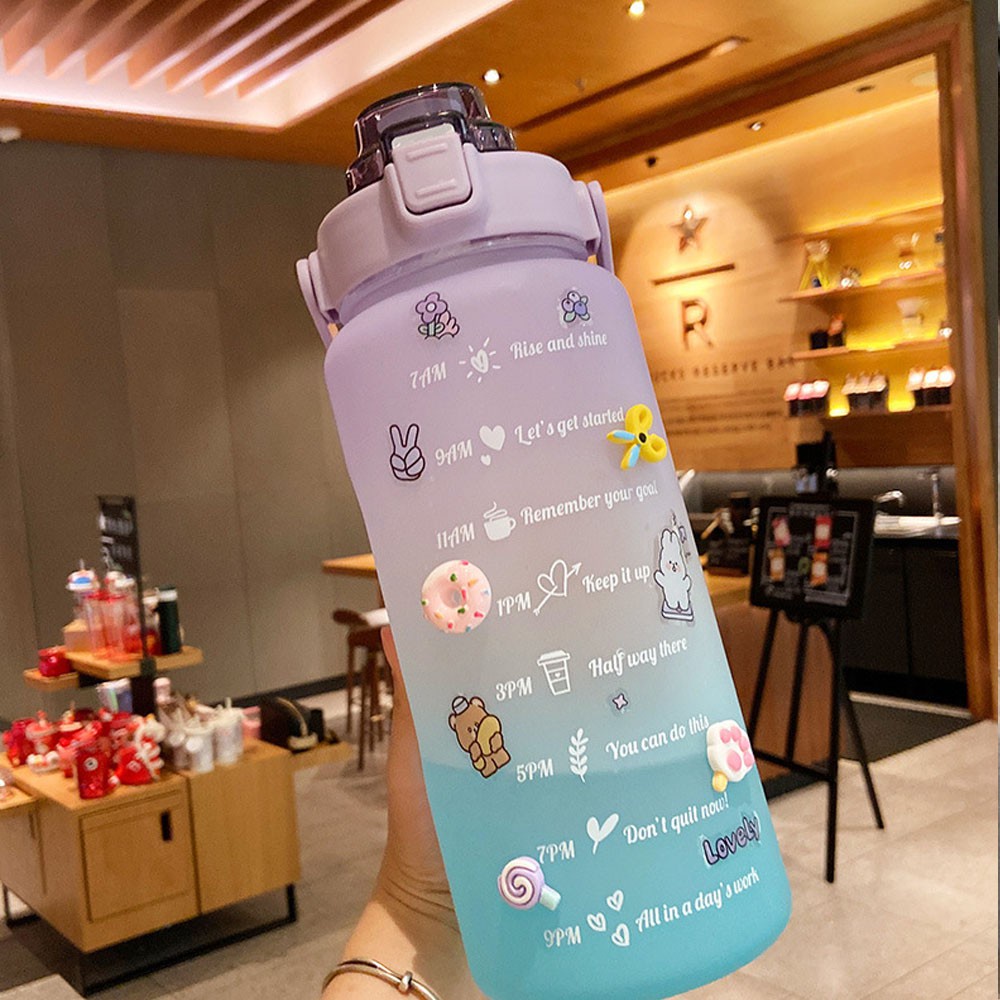 Nhà cửa & Đời sống > Bộ đồ bàn ăn > Bình nước & phụ kiện || Bình Đựng Nước Dung Tích Lớn 2 Lít Có Vạch Kẻ Chia ML Có Ống Hút Và Quai Xách Tiện Lợi,Nhựa An ToànCòn hàng