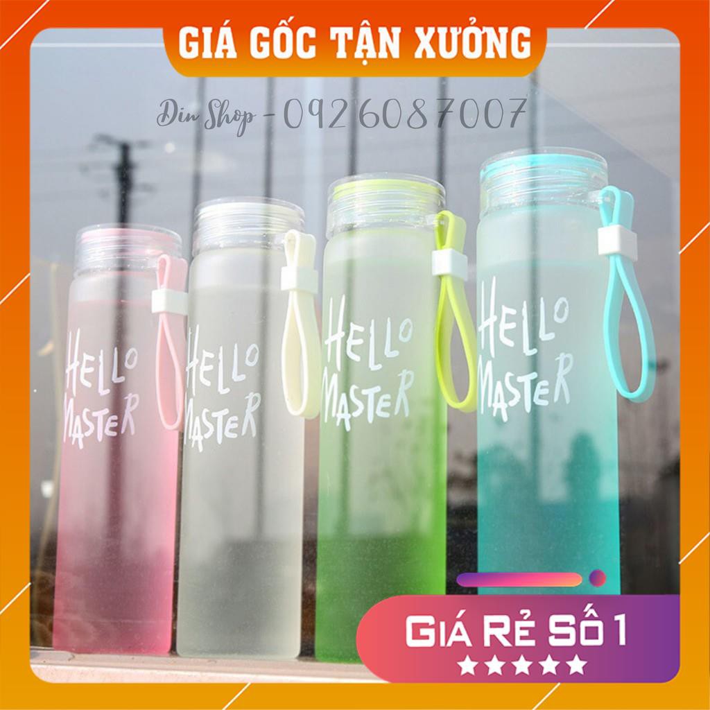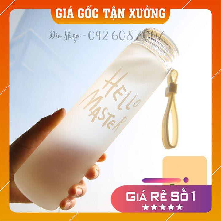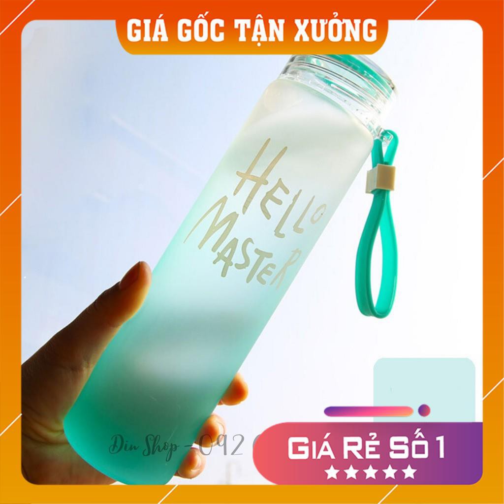 Bình Đựng Nước ⭐FREESHIP⭐ Bình Nước Hello Master Bình Nước Thủy Tinh Nhiều Màu Sắc Kèm Dây Xách 450ml