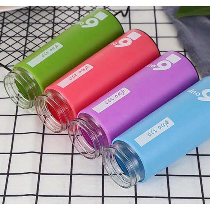 Bình nước thủy tinh bọc nhựa 450ml có tên gọi khác là bình màu 6UP , có lõi được làm bằng thủy tinh cao cấp, trong suốt, chịu nhiệt từ 0 độ C đến tối đa 70 độ C. Bình nước thủy tinh bọc nhựa giữ nhiệt có thiết kế nhỏ gọn phù hợp mang theo bên mình.
