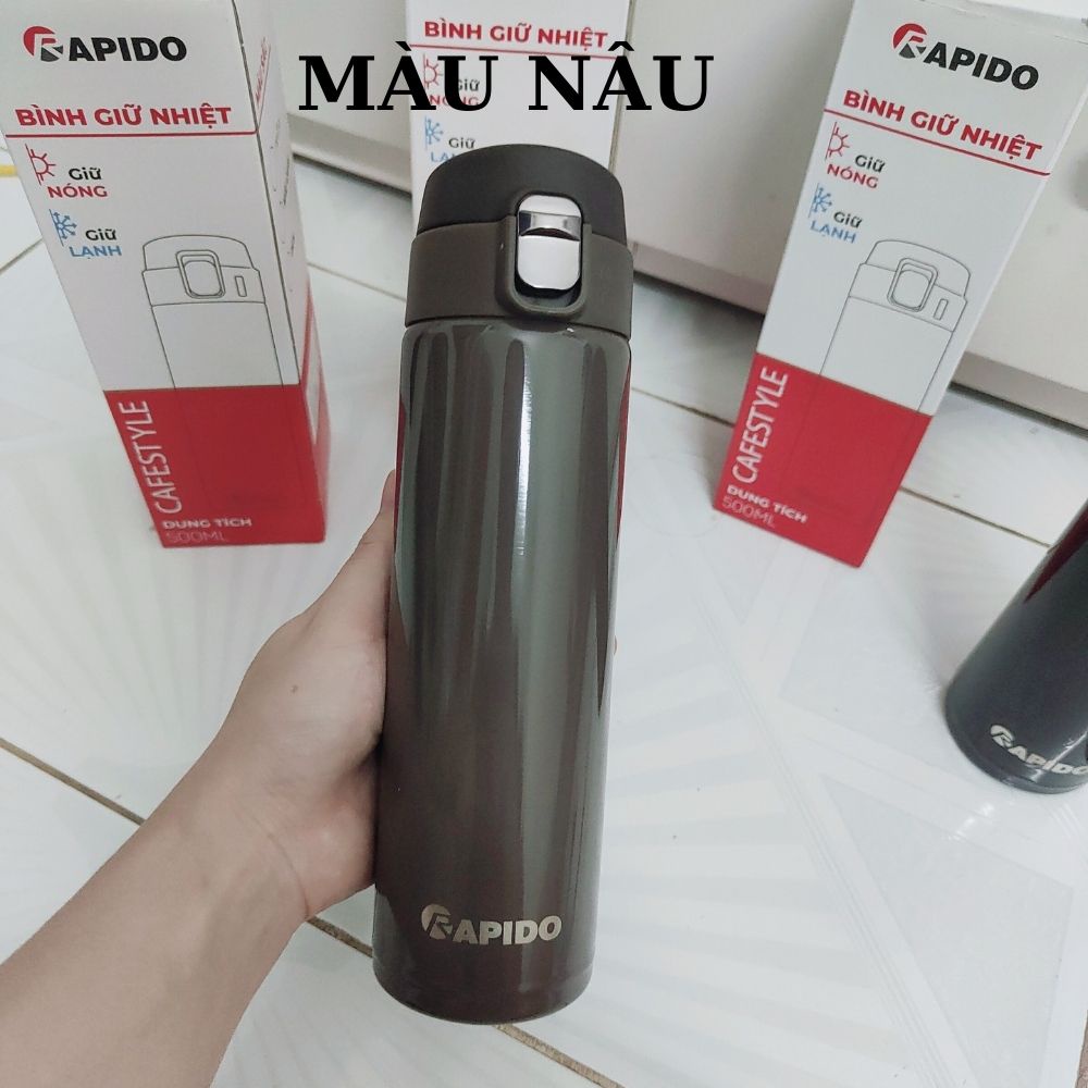 Bình Đựng Nước Giữ Nhiệt 500 ML Chính Hãng Rapido Mẹ Gạo,bình nước giữ nhiệt cao cấp rapido dung tích 500mlCuộc sống bận rộn, di chuyển nhiều, bình giữ nhiệt trở thành món đồ không thể thiếu của rất nhiều người. Bình giữ nhiệt Rapido chinh phục khách hàng với khả năng giữ nhiệt tốt, thiết kế đẹp mắt, được làm từ các chất liệu cao cấp, đảm bảo an toàn tuyệt đối cho sức khỏe và rất nhiều ưu điểm khác.