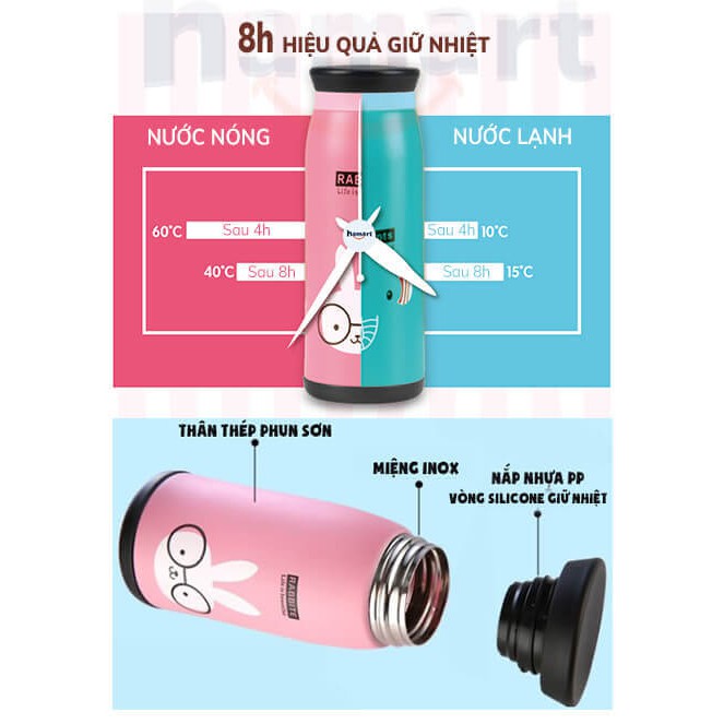Bình Đựng Nước Giữ Nhiệt Hamart Bình Inox Giữ Nhiệt Đựng Trà Đựng Cafe 360ml Cao Cấp So Cute