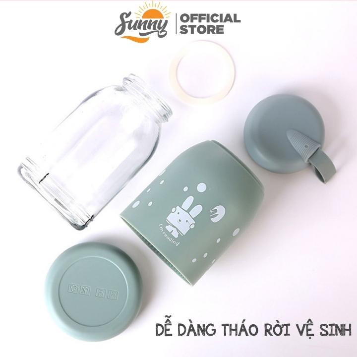 Bình đựng nước giữ nhiệt lõi thuỷ tinh bọc nhựa lúa mạch dung tích 330ml decor bàn học BN2