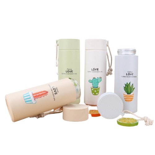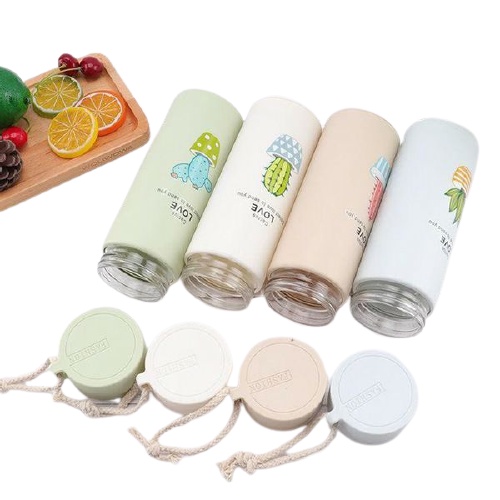 Bình đựng nước giữ nhiệt lõi thủy tinh 400ml in họa tiết xương rồng dễ thương