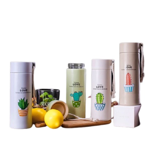 Nhà cửa & Đời sống > Bộ đồ bàn ăn > Bình nước & phụ kiện || Bình đựng nước giữ nhiệt lõi thủy tinh 400ml in họa tiết xương rồng dễ thươngCòn hàng