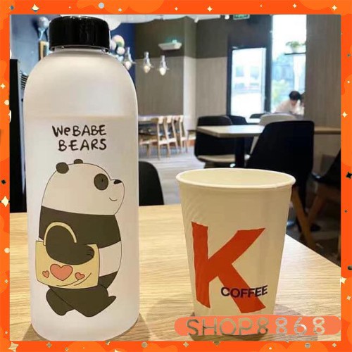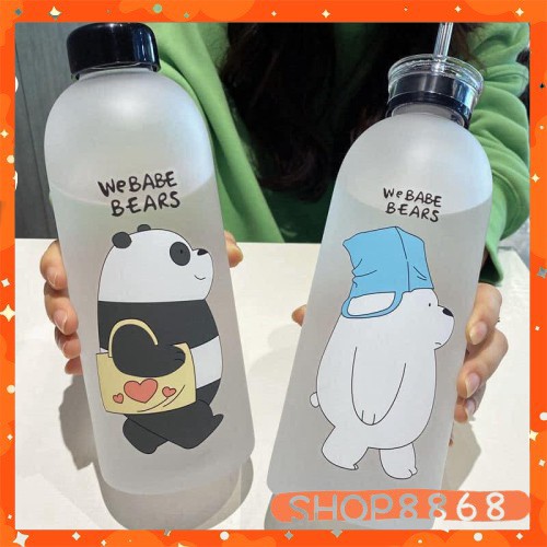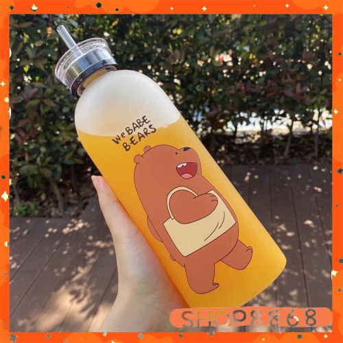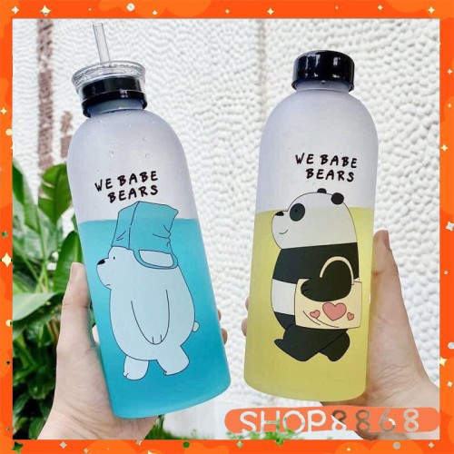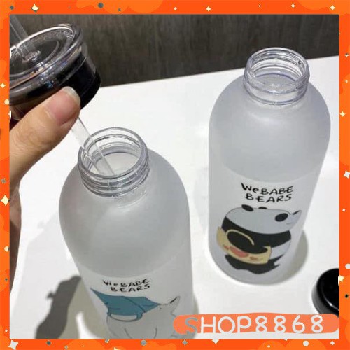 Bình đựng nước hình gấu loại đục (2 nắp + 1 cọ ly 2 túi + ống hút) giao ngẫu nhiên-shop8868