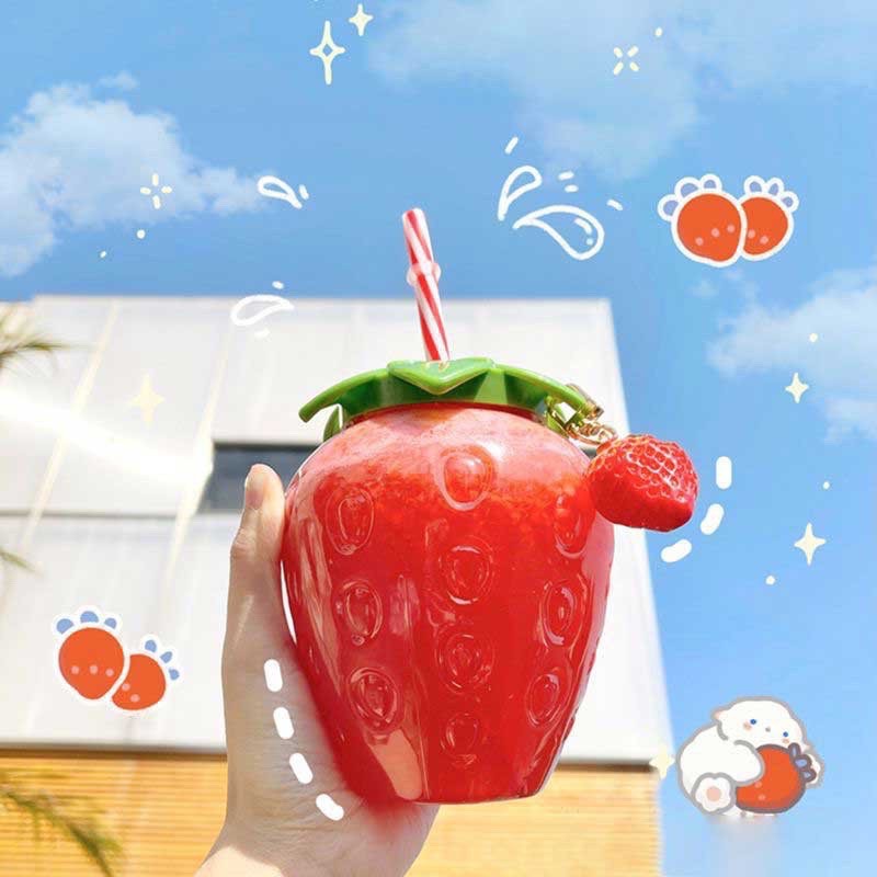 💓 Bình nước dâu tây siu cute, được tặng kèm ống hút, cả móc treo hình quả dâu siêu siêu đẹp lunnnnn 😍