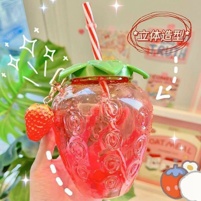 Nhà cửa & Đời sống > Bộ đồ bàn ăn > Bình nước & phụ kiện || Bình đựng nước hình quả dâu tây kèm ống hút và móc khóa dâu tâyCòn hàng