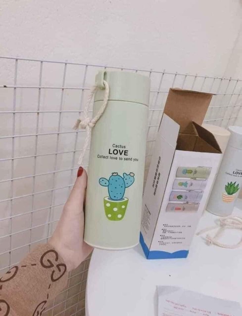 💙💙💙Bình nước thuỷ tinh bọc nhựa Love Cactus