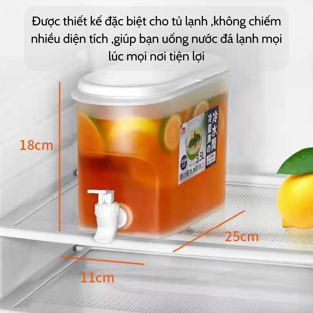 Dung tích 3,5L thích hợp với mọi gia đình,chuẩn bị một bình nước hoa quả để trong tủ lạnh không sợ biến chất,cả nhà luôn có nước bổ mát uống ,mà mỗi lần mở tủ chỉ mất 5s nên rất tiện lợi ạ.