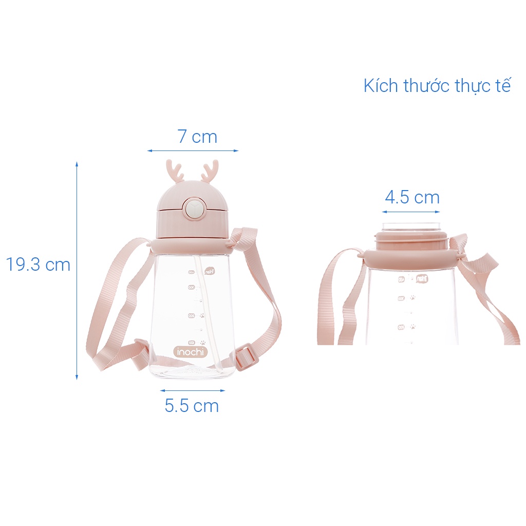 Bình nước INOCHI cho bé Goki Rudy 450ml sừng hươu nhựa Tritan an toàn có dây đeoQuà tặng từ hãng sữa Vinamil